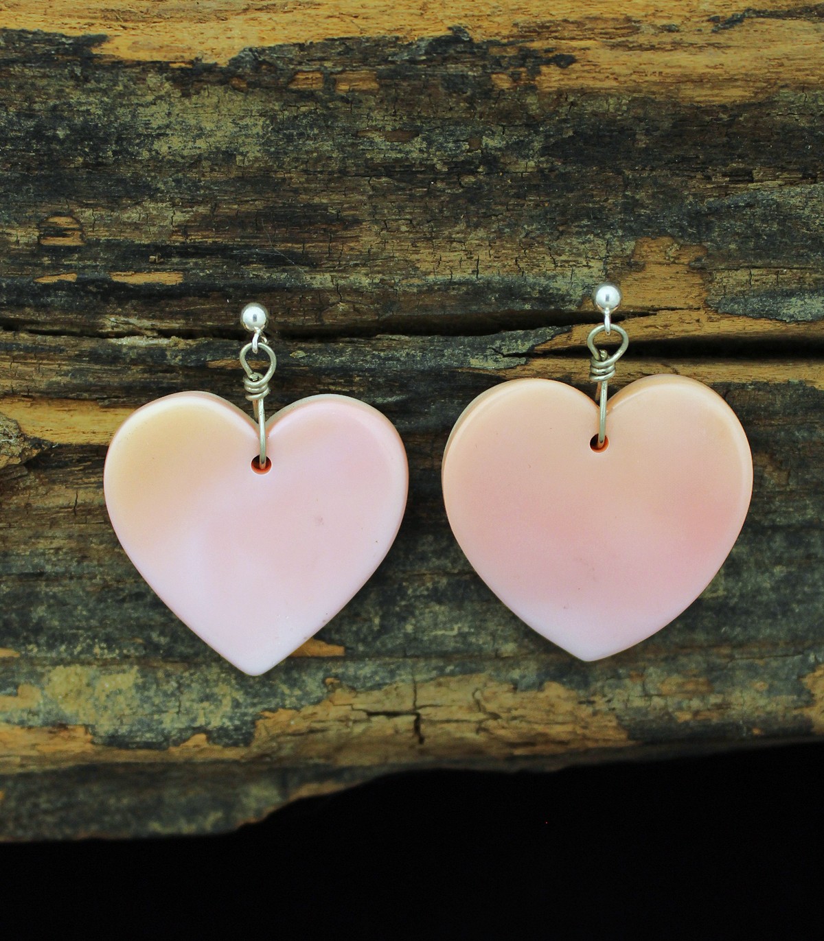 Raw Pink Conch Shell Heart Earrings