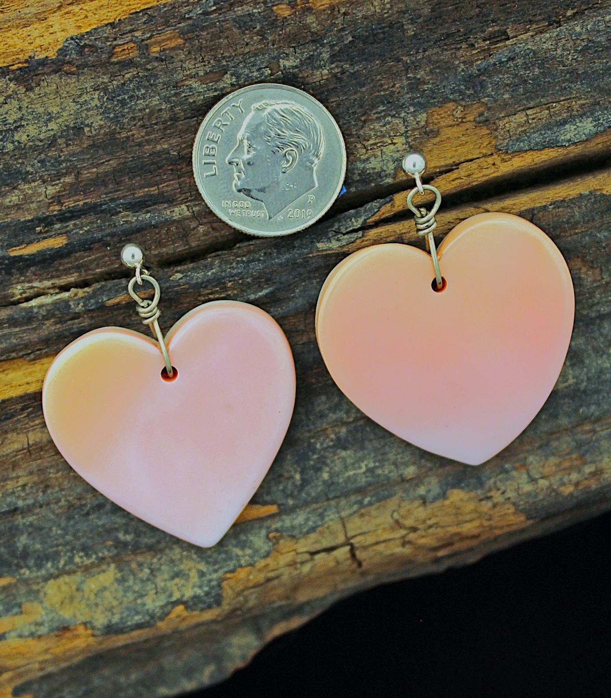 Made by TRADITIONAL HANDS by an Enrolled Cherokee member and Artist Shaundene Hicks (our granddaughter). Medium size pink conch shell hearts on a Sterling Silver post. Posts can be switched to french wire upon request. Just leave a message in the comment box at check out. Conch shell is a natural material and color shade can vary between lighter and darker pink. Occasionally, this style is also available in smaller or larger sizes. If you are interested in different size heart earrings, call our store for availability: 828-554-5884.