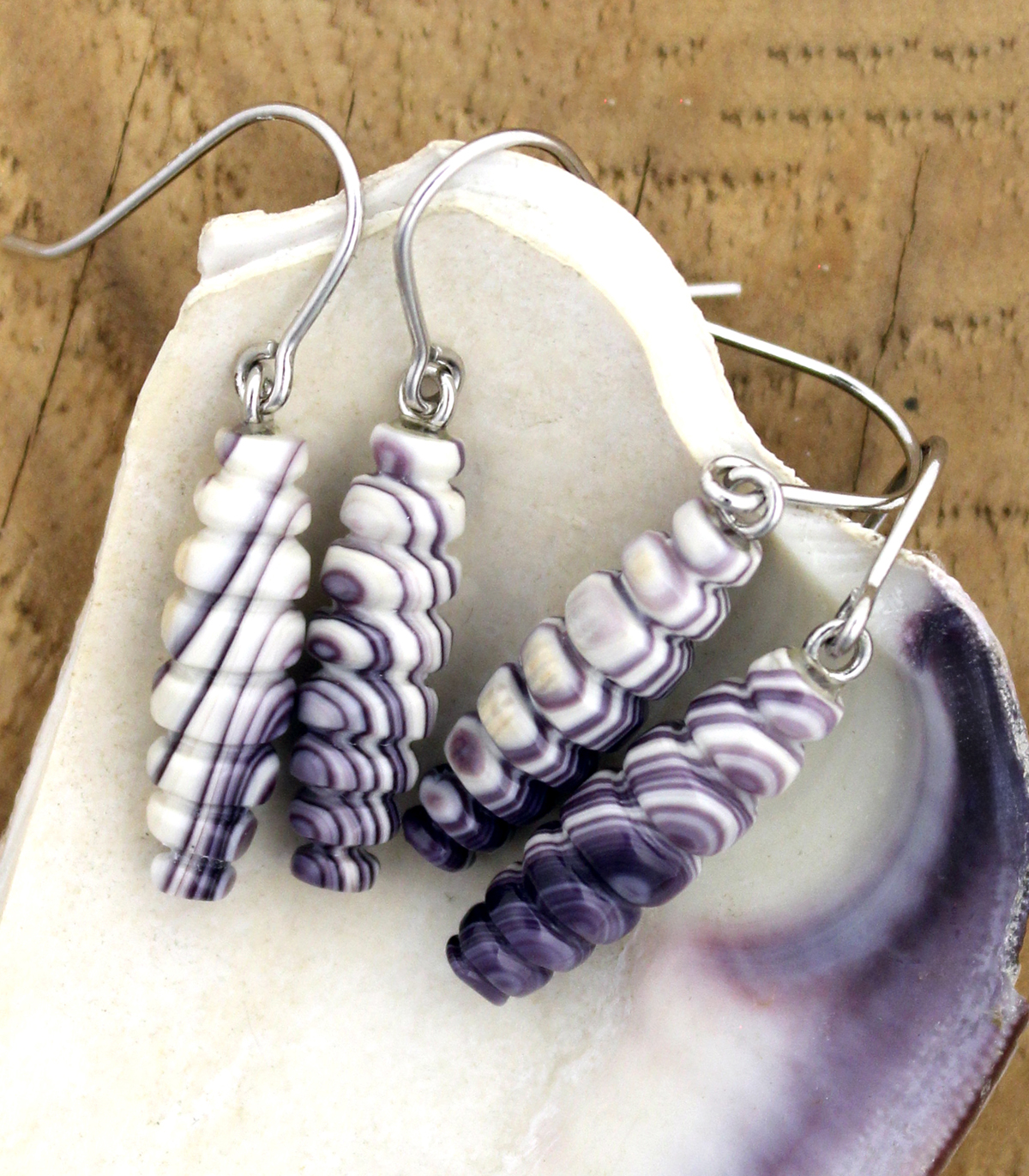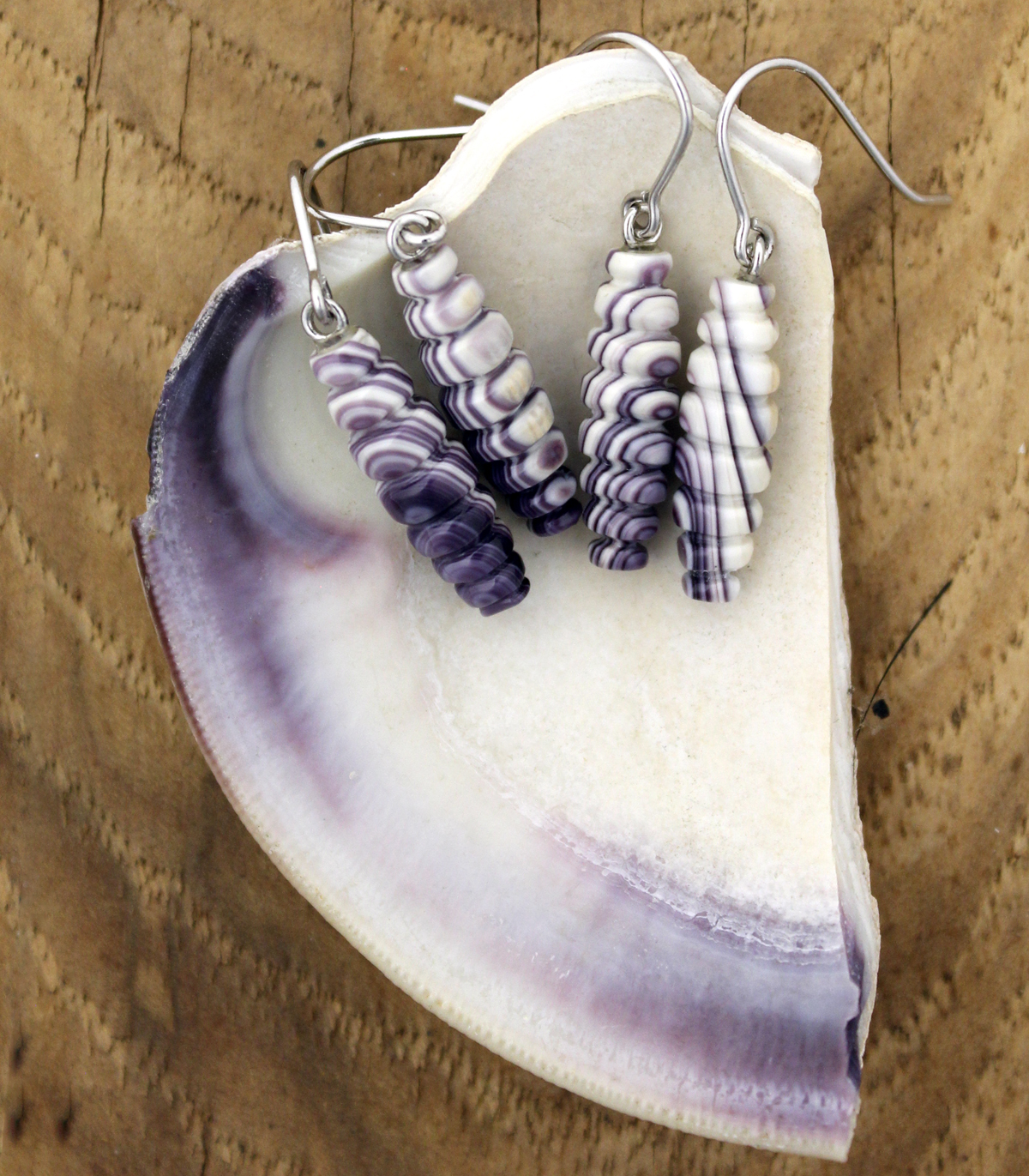 Amazing medium-sized Wampum corn-on-the-cobb earrings. The photo shows the difference in color and pattern: every pair is unique. Price is for one pair. The Sterling Silver french-wire hooks can be exchanged for posts. Just leave a message in the comment box at check-out.